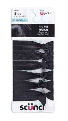 SCUNCI 6PK KNOT PONYTAILER BLK