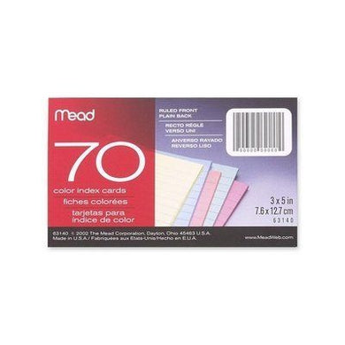 INDEX CARDS 3x5 RULED ASST 70C