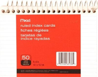 INDEX CARDS 4X6 SPIRAL RUL 50