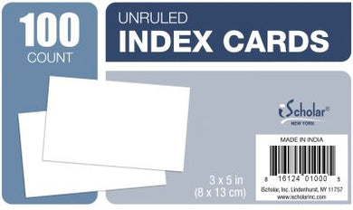 INDEX CARDS 3x5 UNRULED 100CT